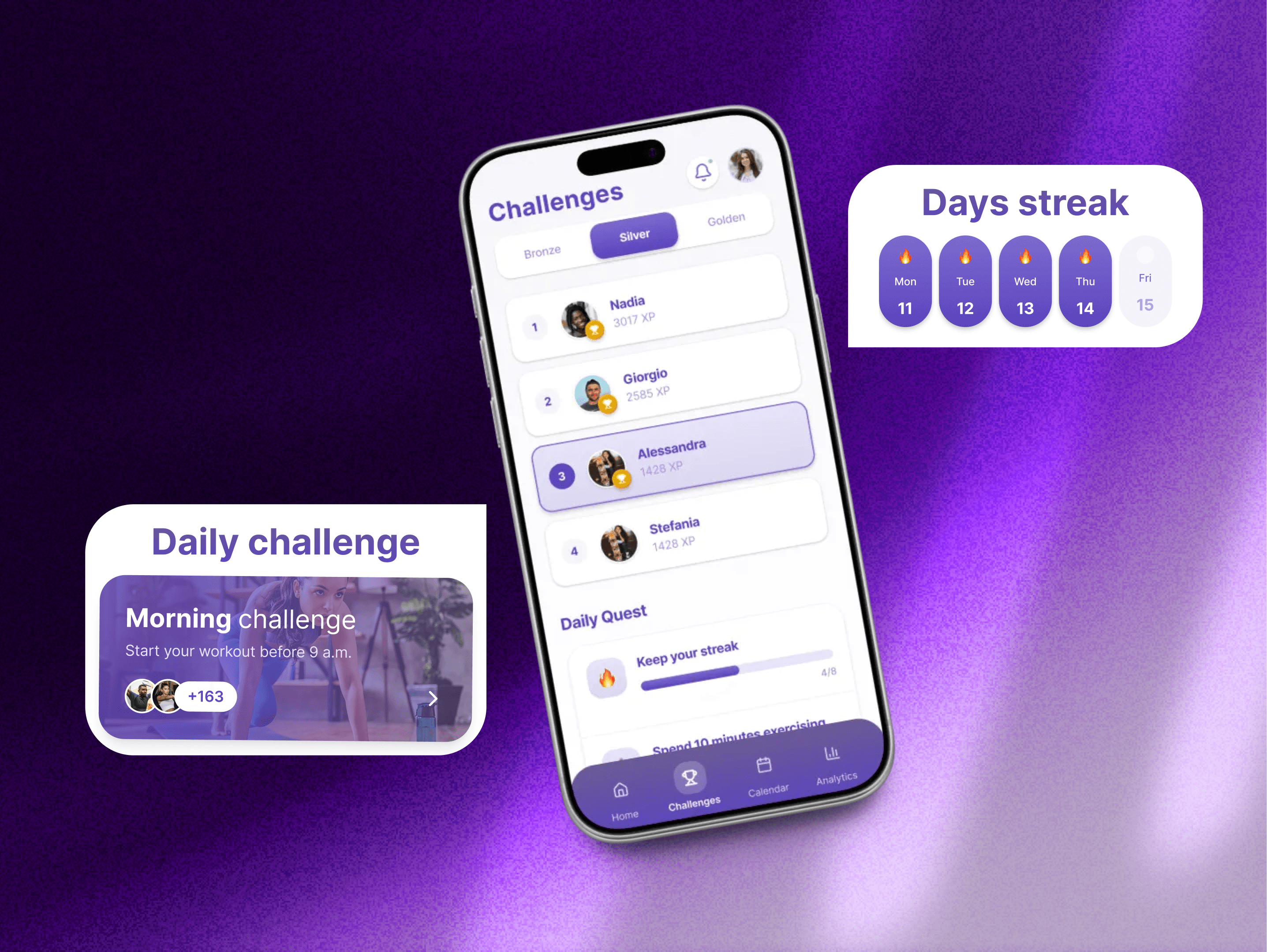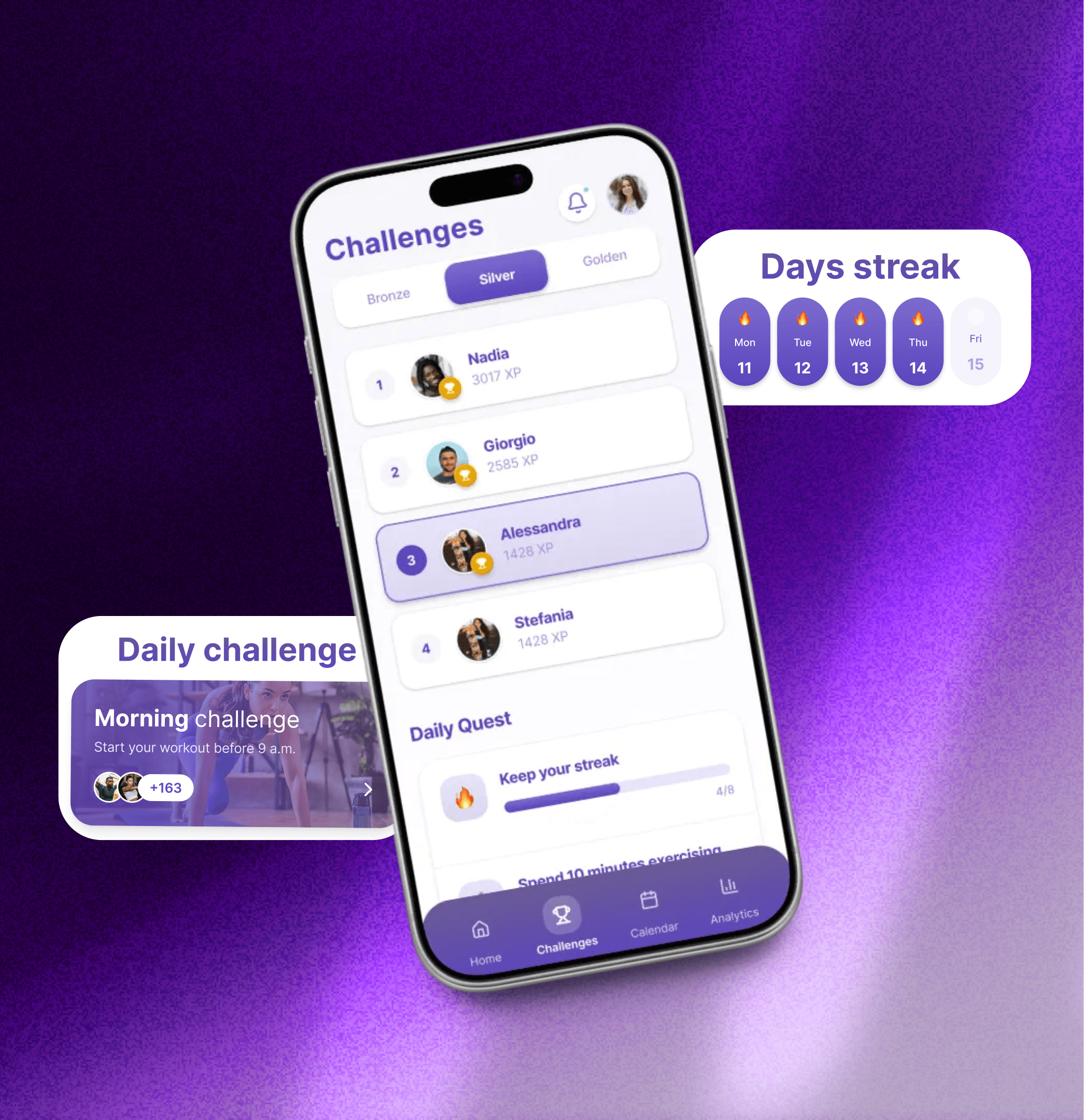 Streaks: Users are pushed to work out daily to protect their streak—a visual representation of commitment.