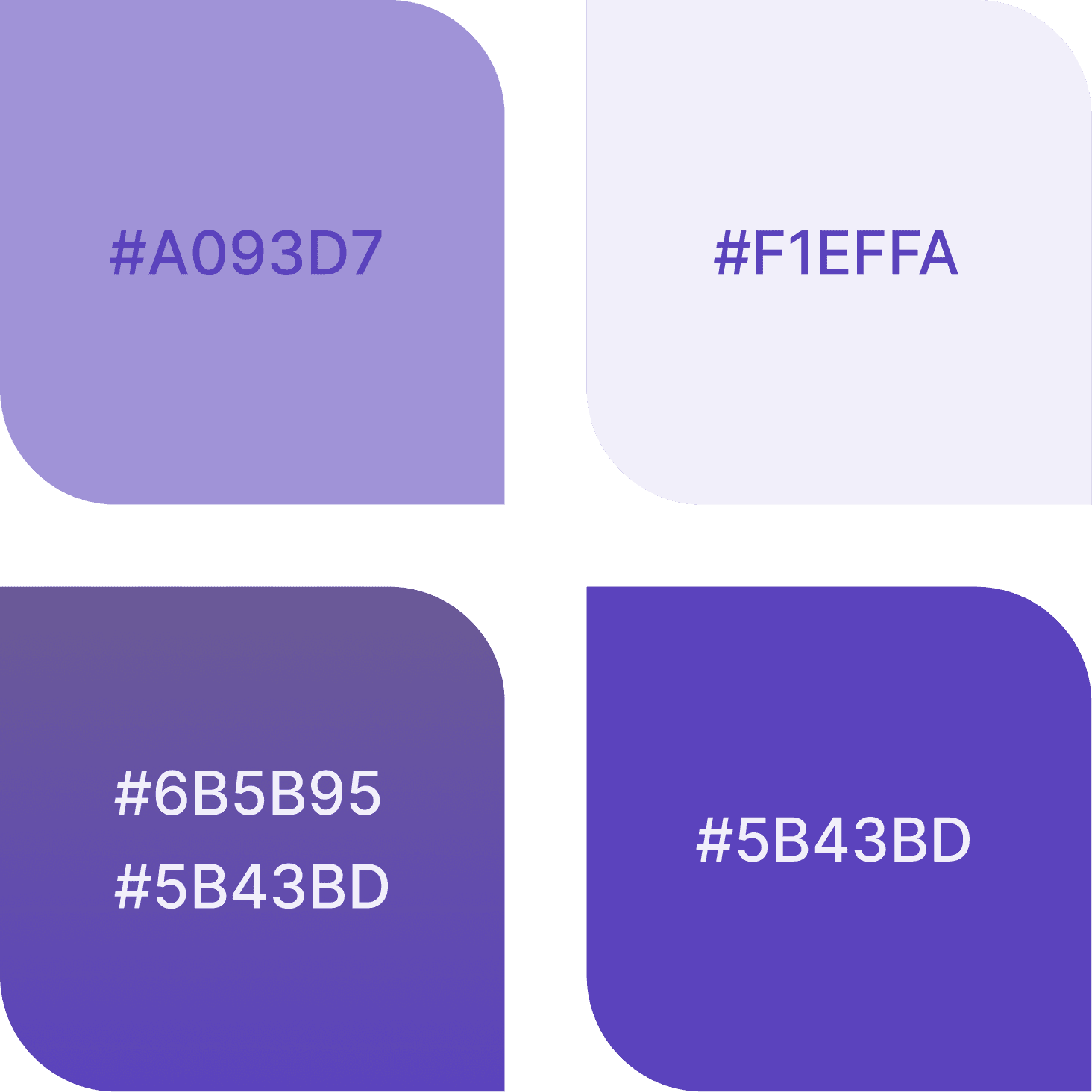 The color palette centers around calming purples to create a friendly and motivating atmosphere. Buttons feature a smooth gradient from #6B5B95 to #5B43BD, adding depth and visual interest to primary actions. Soft lavender (#A093D7) works for secondary details and illustrations, while light purple (#F1EFFA) is used as a background for specific UI elements like cards and sections, adding warmth and contrast without overpowering the interface.