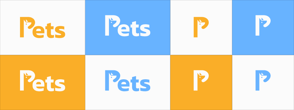 The logo integrates a dog’s head into the design, reflecting playfulness and friendliness while staying professional. Variations include a full logo and a smaller version for favicons or contexts where space is limited.